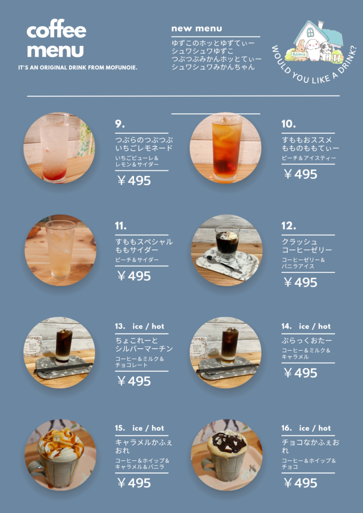 ※2階でふれあいをされるお客様はお飲物のご注文をお願い致します。ケア後も引き続きふれあいを希望される場合は席料金が必要です。※土日祝はワンドリンクのみでの利用は30分までとさせて頂きます。延長される場合は15分275円追加料金が必要です。