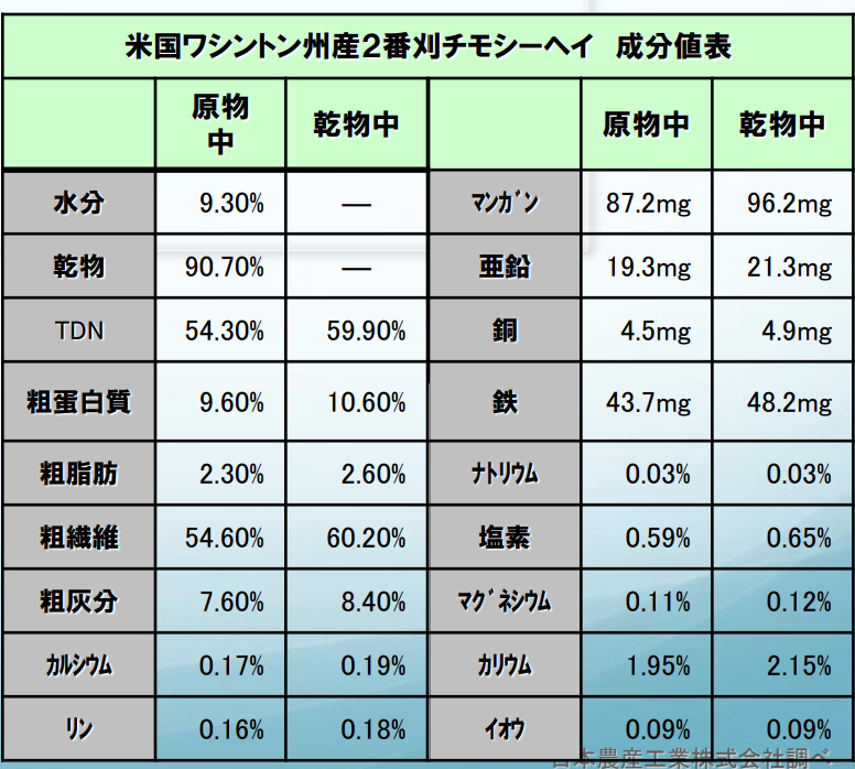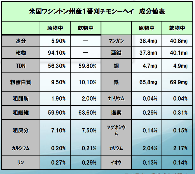 標高が高く寒冷地で育つため成長スピードが遅く、US産と比べて一般的に茎が短めでやや柔らかい傾向です。茶葉特有の香りがあり、嗜好性が高く硬い牧草が食べれない子にお勧めです。