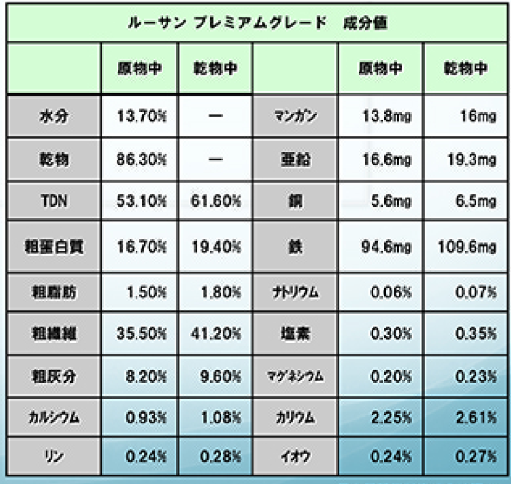 粗たんぱく質、カルシウムが豊富なマメ科の王様アルファルファ。中でも品質こだわった最上級グレードのアルファルファです。